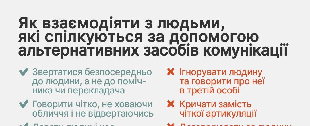 Люди можуть спілкуватися по-різному – словами, жестами, за допомогою карток або спеціальних засобів альтернативної комунікації. Такі способи не є ознакою браку розуміння чи бажання говорити – це інші, не менш повноцінні шляхи до діалогу.