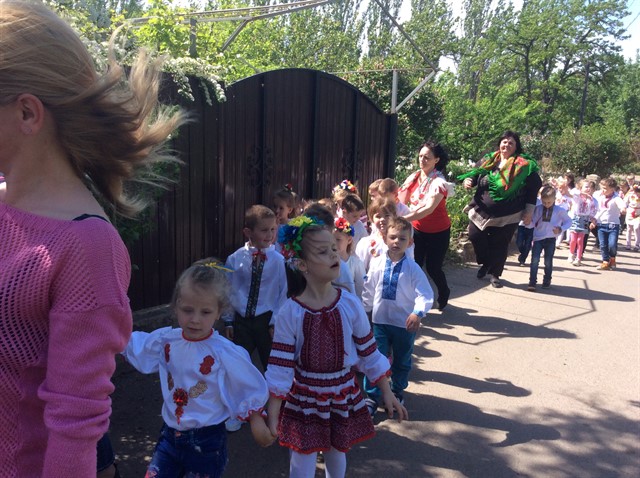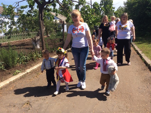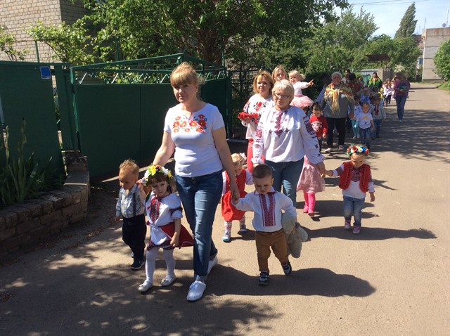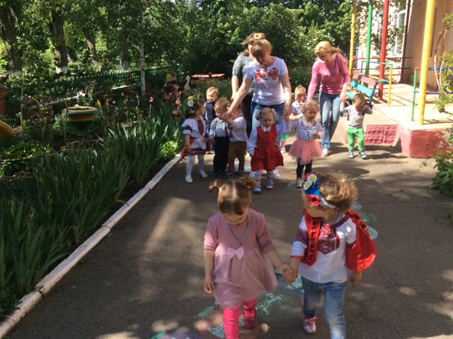 Неперевершеним яскравим дійством відбулася хода в мікрорайоні «Агропромтехніка» всіх дошкільнят , навіть дітей ясельної групи, працівників закладу під гаслом «Вишивана Україна», яких радо вітали мешканці мікрорайону. Після завершення ходи всіх дітей чекала на ігровому майданчику захоплююча квест –гра « Моя вишивана Україна», під час якої діти , виконуючи завдання вихователя – методиста Т.А.Теплюк , вихователів Ананевич Н.В., Остапчук В.А., Моторної Ю.В., Ковтун М.О., Співак Ю.В. з окремих частин склали велику вишивану карту України. Танцювальною композицією завершився перший етап відзначення Дня вишиванки в Баштанському ЗДО №2 «Віночок».