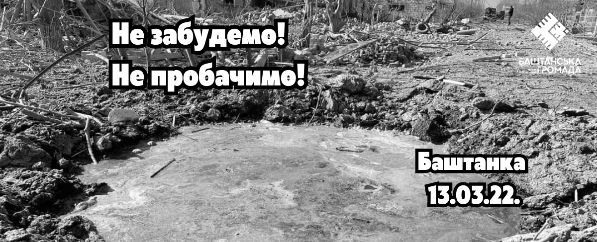 Сьогодні минає рік, як 13 березня 2022 року, російські терористи здійснили авіаудар по нашій Баштанці. Того дня нелюди скинули низку авіабомб на житлові квартали з єдиною метою — покарати нас за наший спротив, посіяти паніку серед населення, створити гуманітарну кризу.