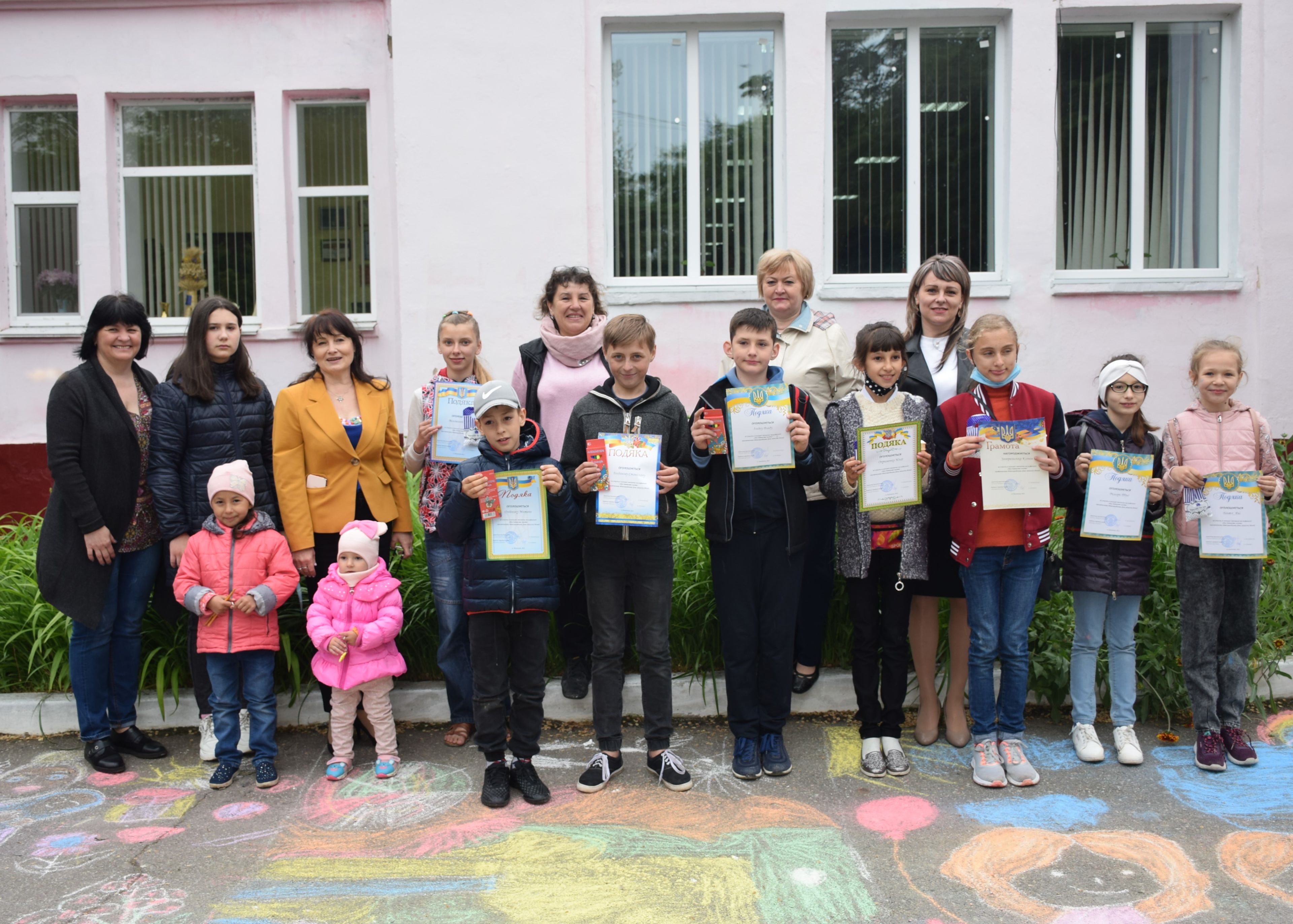 Яскравими та неймовірно прекрасними малюнками прикрасили подвір’я учасники конкурс малюнку на асфальті. Діти захоплено вимальовували крейдою свої оригінальні фантазії та отримали подарунки та солодощі.