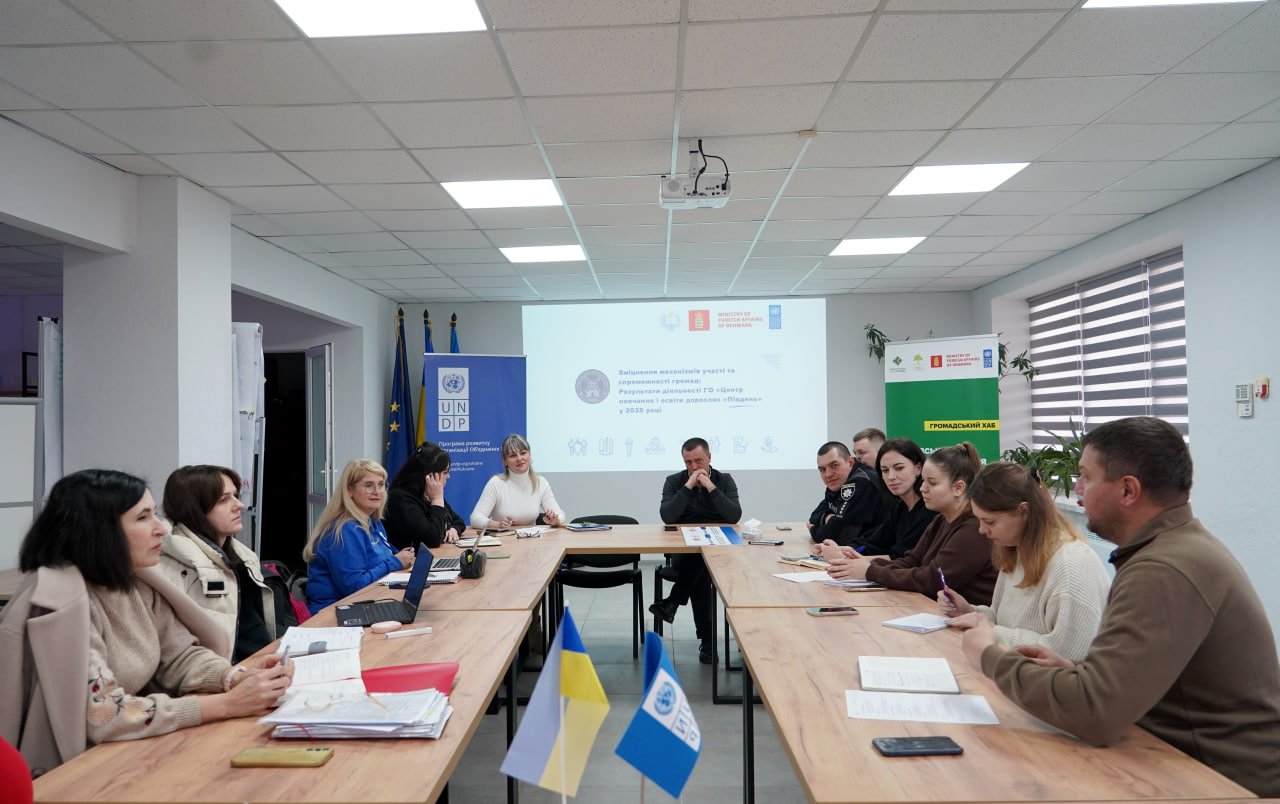 На завершення було підбито підсумки співпраці з ГО «Центр навчання і освіти дорослих “Південь”». Представниця організації розповіла про результати спільних ініціатив із громадою, серед яких — заходи з освіти дорослих, розвиток місцевих активностей та підтримка мешканців у підвищенні їхніх навичок і залученості.