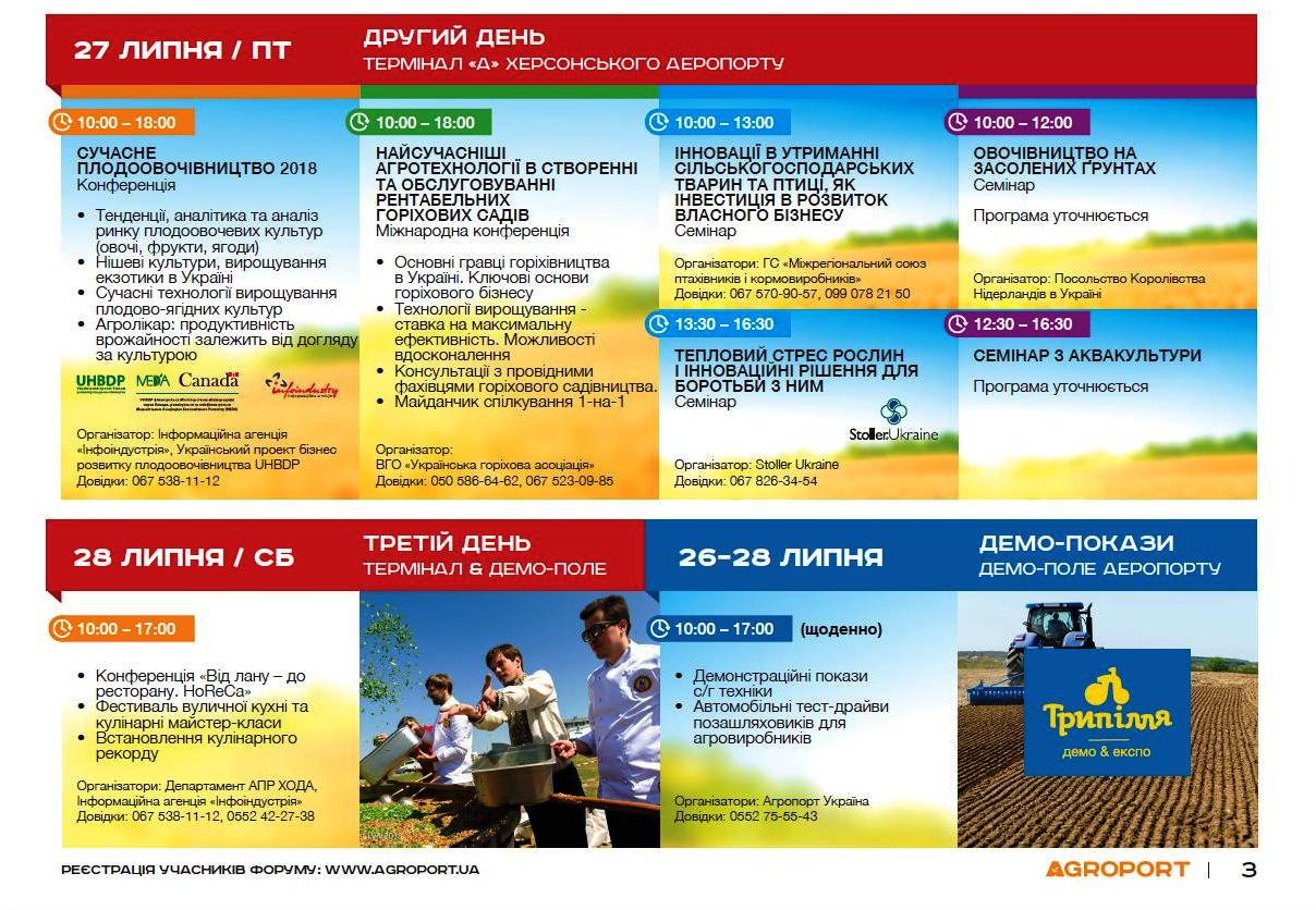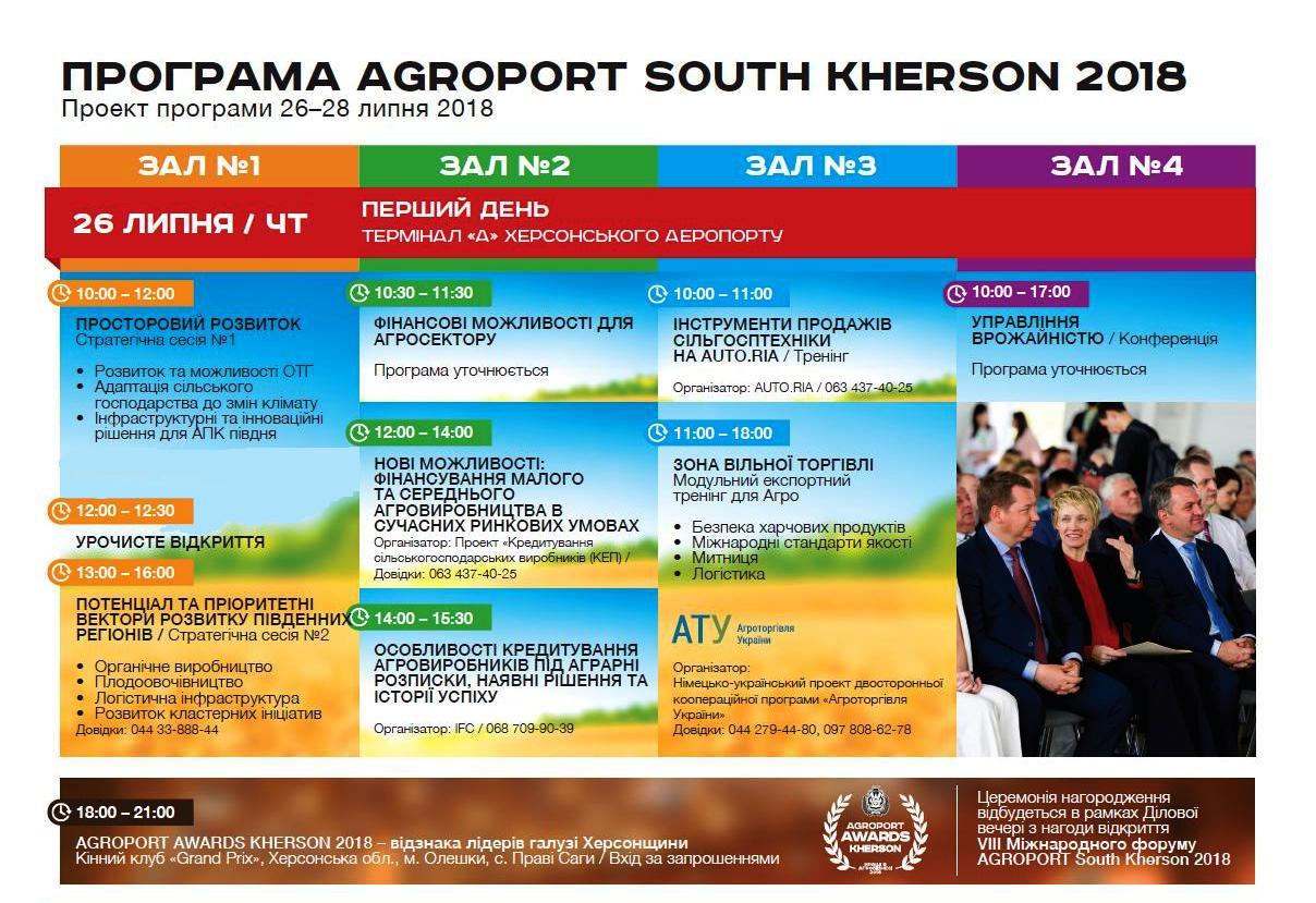26-28 липня в м. Херсон, територія Міжнародного аеропорту “Херсон”, відбудеться VIII Міжнародна агропромислова виставка та форум з підтримки фермерства “АГРОПОРТ Південь Херсон – 2018”. Захід зорієнтований на розвиток територій та підвищення інформативності серед виробників аграрного сектору.