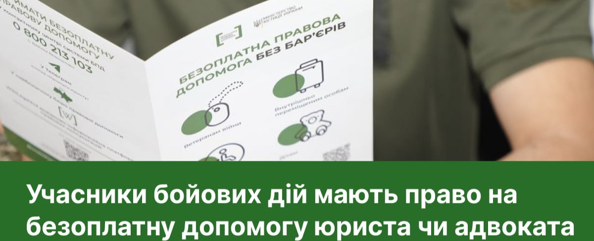 Учасники бойових дій мають право на усі види правничих послуг від системи безоплатної правничої допомоги: від консультацій до представництва інтересів у суді.